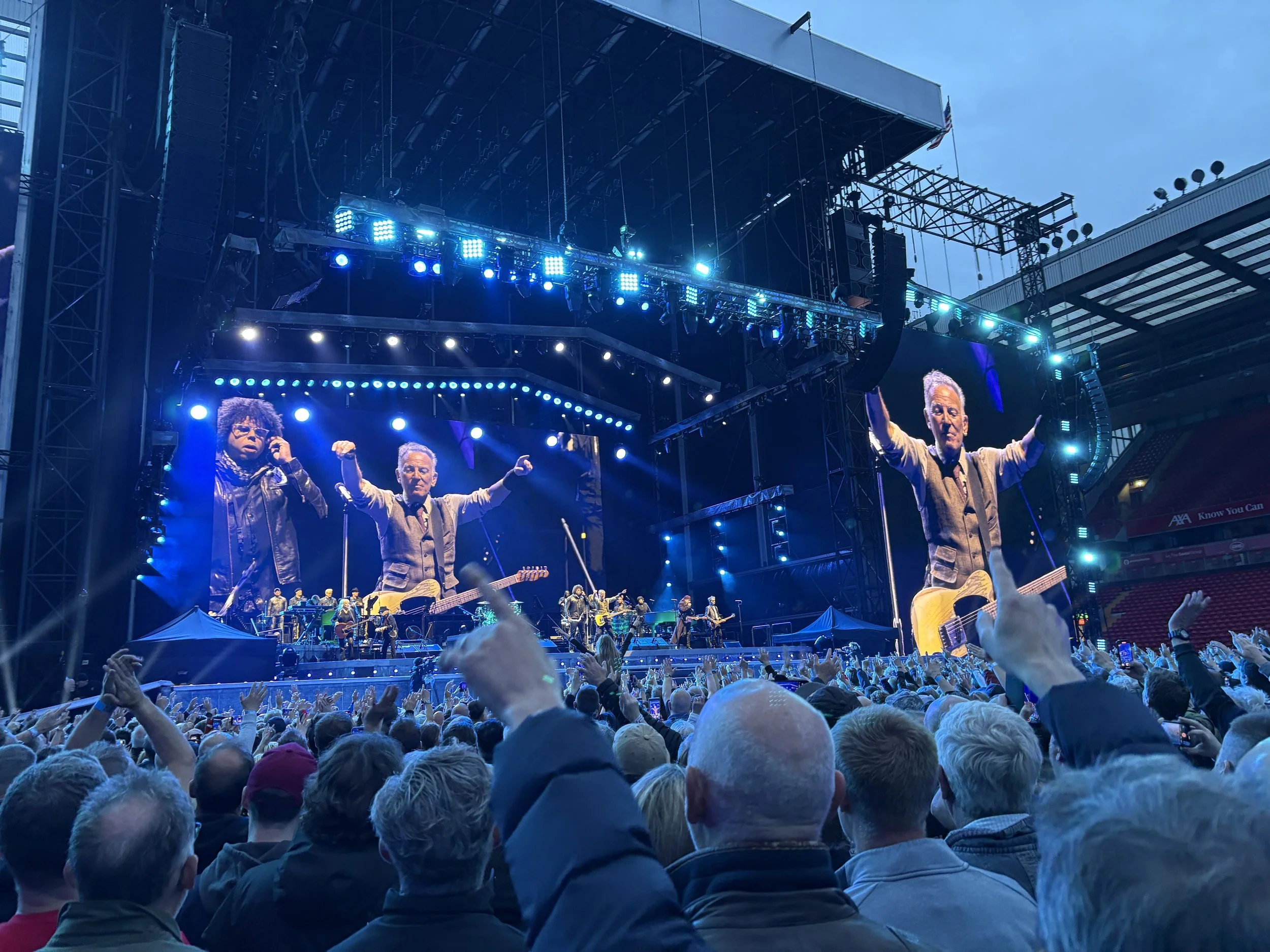 Yet, I am deeply struck by the sheer musical force above us from a band made up of mainly 70-year-olds, and Bruce. I leaned into my partner about 3 minutes in and said, “Look how much he means it”, and he does. He’s a 74-year-old who's played virtually every stadium, arena and country you could imagine. Yet there is not one drop of complacency or forced showmanship in him. He’s concentrating, grafting, singing, grunting, sweating, taking it all in.